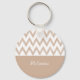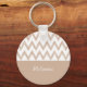 Un llavero de moda marrón y blanco con un patrón de chevron de lápiz de color dibujado a mano. Personalice este diseño moderno y elegante de zigzag marrón claro añadiendo su nombre.
