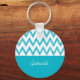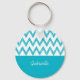Una cadena de teclas moderna, turquesa y blanca, con un patrón de chevron de lápiz de color chillón dibujado a mano. Personalice este moderno y elegante diseño de zigzag azul acuático añadiendo su nombre.
