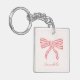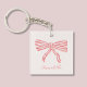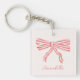Llavero femenino con ilustración de lazo a rayas rosa y nombre en letra cursiva. Disponibles artículos a juego. Arte original de ilustraciones propias de la artista. Por favor, use el botón de mensaje debajo para obtener ayuda con personalizaciones adicionales y solicitudes especiales. © Zoe Chapman Design