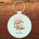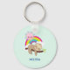 Un keychain personalizado con un ilustracion con una graciosa pereza marrón que cae alegremente sobre una rama de árbol. Un arcoíris colorido detrás de él junto con un sol rosado sobrevolando la cabeza. Agradable, adorable y de moda.