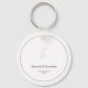 Leaf blanco limpio y rosa simple | Cadena de teclas Boda moderna Con escritura de bayas sobre un fondo blanco limpio con una simple hoja de tormenta de polvo rosa, estas cadenas de moda se pueden personalizar con sus nombres y fecha de boda. El toque final perfecto para bodas, duchas de novias, duchas para bebés, graduaciones y cumpleaños. Diseñado por RevivaDesigns