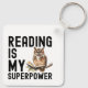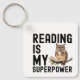 Lechuza acuarela Gusano Leyendo Keychain. Ilustracion de una lechuza acuarela con un libro y la cita: "Leer es mi superpoder".