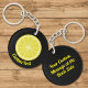 Recorte redondo del icono del limón. Color de fondo personalizado. Texto personalizado en ambos lados.