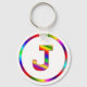 Un monograma colorido con la letra J en colores arcoiris dentro de un círculo arcoiris. Comparte tu orgullo por tu nombre con un divertido y feliz J inicial.