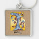 Llavero Letra medieval azul y marfil rojo iluminada con le