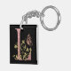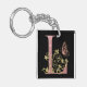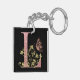 purpurina rosa bonito inicial / letra L con hojas y giros dorados y sobreposición de mariposa de cobre sobre fondo negro