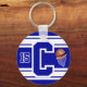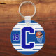 Llavero Letra y número de baloncesto - azul oscuro y blanc