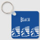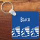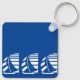 Un llavero personalizable de playa, piscina o embarcadero con letras deco y un patrón de veleros blancos navegando por olas oceánicas ventosas, sobre un fondo azul profundo.