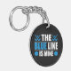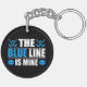 La cadena de claves Hockey Blue Line incluye patines azules y palos de hockey con texto blanco y azul que dice La Línea Azul es mía.