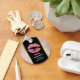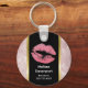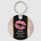 Keychain personalizado con un fondo compuesto por un moderno patrón de hojas tropicales de oro subió. En la parte superior hay un marco negro con un borde de gradiente dorado, en el interior están los labios purpurinoso rosados.