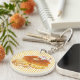 小さい猫っぽい生き物と、食べ物の組み合わせで描いたものをプリントします。