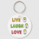 Live Laugh Love expression illustrated with the words plus faces - living, laughing and loving. A fun design to smile along with.