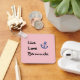 Muestra la frase "Live Love Bermuda" en un guión o estilo impreso a mano en texto negro y un ancla azul de un barco. Fondo rosa. Un recuerdo para los residentes de las Bermudas, turistas, visitantes, marineros y barqueros. Bonito diseño tranquilo y feliz para recordarte de qué se trata la vida. Celebrar la alegría y la libertad de las islas Bermudas.