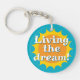Living the dream round yellow sun rays keychain. Cuet keychain gift with inspirational quote. Fun typography design with sunny logo. Unique gifts for successful colleague, coworker, corporate employee, boss, staff, personnel, business owner, friends, family, wife, husband, grandpa etc.