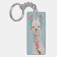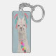 Llama II adorada por Victoria Borges. Llama de color blanco con pompones decorativos y adornos de estilo "tassel".