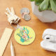 Escena de llama en acuarela, que puede personalizar con su nombre o texto personalizado. Esta llama rubia bonito tiene una flor y plumas en el pelo, una guirnalda a juego y una alfombra tradicional peruana. Está parada en un jardín de cactus florido con flores amarillas dulces y un fondo amarillo pastel. Por favor, busque en nuestra tienda los artículos que coincidan y coordinen.