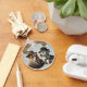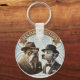 Descripción lleva un poco de misterio a donde quiera que vayas con Benjamin y botones llavero redondo con el dúo de detectives más astuto de la ciudad, un bulldog histórico y un dálmata elegante con ropa formal vintage. Este llavero se asienta contra un fondo azul estilizado y con patrón.
