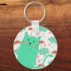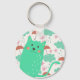¡La cadena de claves de los gatos que llueve con lluvia, paraguas, polka salpicada de nubes verde azuladas, paraguas y un verde azulado gato sonriente!
