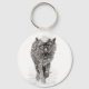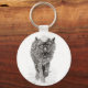 Llavero Lobo negro enojado en la nieve, invierno salvaje