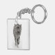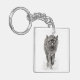 Llavero Lobo negro enojado en la nieve, invierno salvaje
