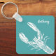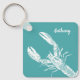 Crea un accesorio personalizado con un estilo náutico. Esta cadena de claves tiene un ilustracion de langosta en blanco contra un fondo azul verde azulado y está lista para ser personalizada con un nombre u otro texto en escritura blanca o cursiva. El color de fondo de esta cadena de claves se puede cambiar a un color diferente. Seleccione la opción personalizar para modificar el fondo. Por favor, ten en cuenta que necesitará cambiar el color tanto en la parte posterior como en la parte delantera de esta cadena de claves.