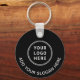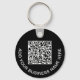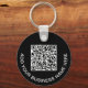 Moderna cadena de claves negra promocional para su empresa u organización. Sube tu logotipo, crea fácilmente un código QR escaneado vinculado a tu sitio web, y agrega dos líneas de texto blanco, como tu nombre comercial, lema, gracias o deja en blanco.