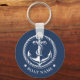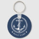 Logotipo Nautical Anchor Navy Blue Boat Name Keychain.