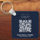 Promociona tu marca con esta elegante cadena de claves azul marino con tu logotipo comercial y un código QR para acceder fácilmente a tu sitio web o ofertas promocionales. Perfecto para una marca profesional, mínima y moderna, esta cadena de teclas de doble cara es una herramienta promocional ideal para la apreciación del cliente. Personalizar con su URL para publicidad simple y efectiva.