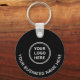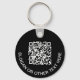 Moderna cadena de claves promocionales para su empresa u organización. Añade tu logotipo y código QR y una línea de texto personalizado en cada lado, como el nombre de tu empresa, el lema, gracias, etc., en una tipografía blanca simple.