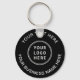 Simple cadena de claves negra promocional para su empresa u organización. Añada su logotipo o código QR y dos líneas de texto personalizado en tipografía blanca moderna, como el nombre de su empresa, el lema, gracias o deje en blanco. Los colores del fondo y del texto se pueden cambiar seleccionando "personalizar más adelante" o contactarnos en juliehortondesigns@gail.com.
