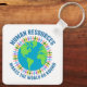 Hermosa cadena de claves de la oficina de recursos humanos que lee Recursos Humanos hace que el mundo gire alrededor de un globo terrestre verde y azul bonito. Especialista en empleo y obsequio de reclutadores de empresas para un director de contratación. Una comunidad de representantes de RR. HH. se toman de las manos en los bonitos colores del arcoiris de todo el planeta. Mira esta cita inspiradora para animar cada día.