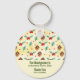 Navidades fiesta (u otro evento) gracias a favor de la cadena de claves con un lindo patrón con conos de pino y holly en un fondo de color amarillo con pequeños círculos blancos dispersos por ahí.