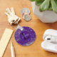 Mandala de diseño plateado ornamentada sobre un fondo morado con estrellas plateadas cayendo sobre un borde de plata purpurinoso en el fondo para obtener un resplandor extra. Se puede personalizar con una letra, logotipo o nombre en el centro sobre un círculo violeta. Una fantástica fiesta de ensueño favorece a las vibraciones. Parte del Encantador Mandala con la Colección de las Estrellas Whimsicales.