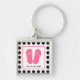 Un llavero que ofrece un fondo de lunares negros. Ilustracion rosado de los flips-flopes dentro del cuadrado en el centro. Personalice con su nombre.