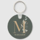 Letter M monogram floral. Letter M in golden brown texture accented with green watercolor compound leaves, flower blossoms and gold dust. Persoalized with name in matching font.