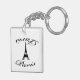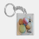 Llavero de París Francia con arte de la torre Eiffel y los macarrones coloridos famosos.