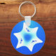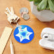 Presenta una estrella fractal blanca de David sobre un fondo azul.