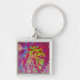Llavero Magenta psicodélica y flor de dalia amarilla
