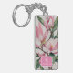 Llavero Magnolia rosa acuarela Monograma de arte moderno