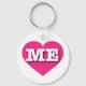 Este llavero presenta un vibrante corazón rosado caliente que contiene las letras negrita, blanca y alta del funda ME, la abreviatura oficial de Maine, el estado del pino.