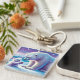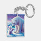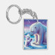 Bonito en azul y blanco, un oso polar con su cachorro está teniendo un momento especial en el hielo. Llavero acrílico.