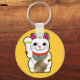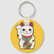 El gato afortunado que llama sobre un fondo dorado. Pensar en la riqueza