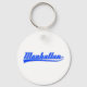Manhattan, Nueva York, escrito con un swash (cola). Fuentes en blanco y azul. Diseño de texto original.