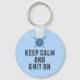 Divertido El diseño de Keep Calm and Knit On hace un lindo regalo de tejido. Cita de humor negro con hilo azul bonito y agujas de punto.