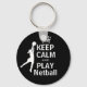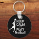 Personalizable, mantenga la calma y juegue al anillo de claves de netball con posiciones de imagen de stick de corazón. Idea de regalo divertido para jugador de netball o aficionado.