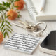 La 2da Suite para cello solo de Johann Sebastian Bach se muestra en esta cadena de llaves exactamente como la copió a mano su esposa Anna Magdalena. La primera página se muestra en la parte delantera y la segunda página aparece en la parte posterior. Seguramente no puede haber un guardián de las llaves para un violonchelista más apropiado que un vistazo de esta obra maestra consagrada