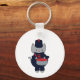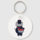 Are you looking for a gift for the drummer in your life? This cute keychain features a gray cat wearing a navy blue and red marching band uniform while playing the snare drum.