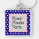 Personalizar este fotograma clave de foto de puntos de polka blanco y azul rojo reemplazando el marcador central por su propia foto subida digitalmente. El diseño funcionará mejor en las cadenas de teclas de tipo cuadrado.
