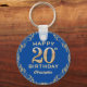 Keychain de marco Purpurina azul y oro de la fiesta de cumpleaños 20. Para una mayor personalización, haga clic en el botón "Personalizar" y utilice nuestra herramienta de diseño para modificar esta plantilla.