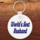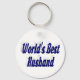 Cadena de claves con el mejor esposo del mundo en texto azul oscuro en 3D. Las cadenas de clave redonda y cuadrada están disponibles en varios tamaños.